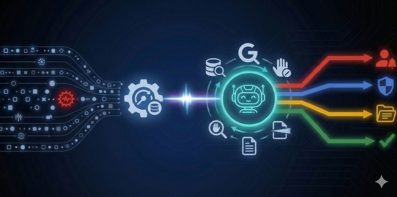 - Giải quyết: Một tác nhân Vertex AI (được xây dựng bằng bộ công cụ ADK) nhận sự kiện, tiến hành điều tra bằng các công cụ tùy chỉnh và ghi lại quyết định của mình.